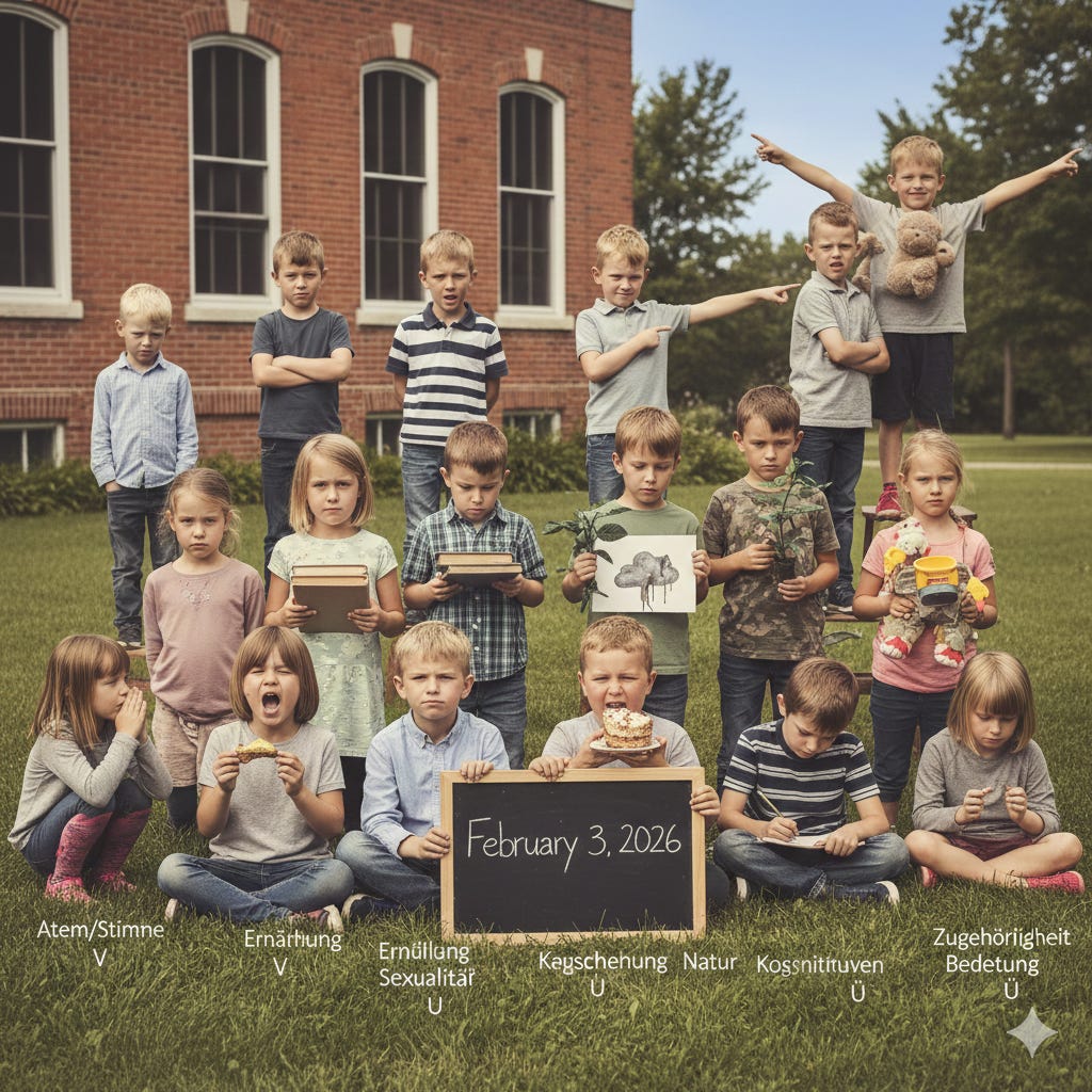 Kindheitsentwicklung: Aufklärung ohne Scham; Respekt vor körperlichen Grenzen. Tonfall der Eltern: Offen und schützend.